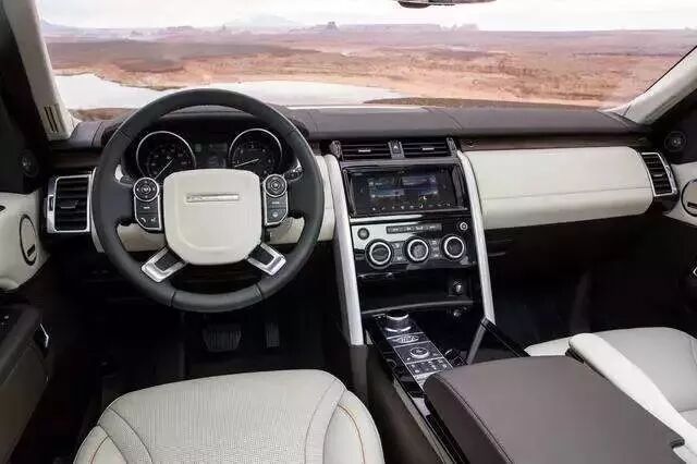 全新一代发现的内饰相较于上一代来说,变得更科技,更简约。当然,不变的是一如既往的豪华。新增的2.0T车型搭载了InControl智能驭领尊享触控系统,包含一块10.2英寸高清触摸显示屏。而3.0升HSE及HSE LUXURY车型升级标配可显示行驶信息及娱乐功能的液晶仪表盘。另外,包括车道偏离预警系统、LED前大灯,以及全尺寸备胎等均为标配。此外全车设有多个充电接口和USB接口。