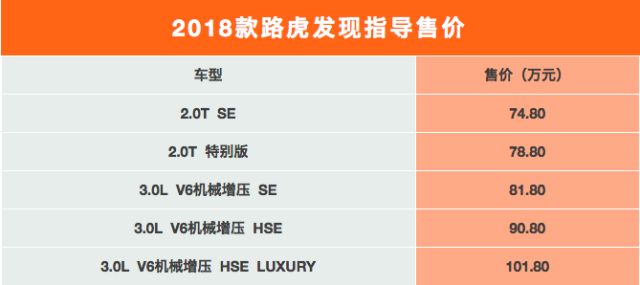 2018款路虎发现正式上市,提供5款车型,售价区间为74.8-101.8万元。相较现款车型,2018款发现增加了两款搭载全新Ingenium 2.0T发动机的新车型,同时对全系车型在配置方面进行了升级。