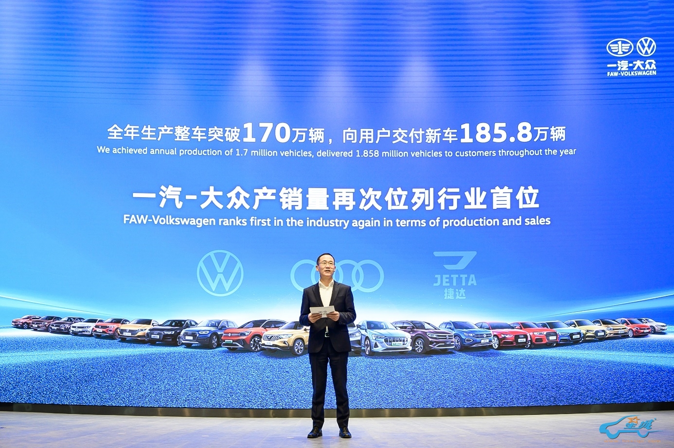 1月17日,一汽-大众举行2022年新闻年会。一汽-大众汽车有限公司的中外方经管会成员及书记,大众、奥迪、捷达三品牌相关领导,以及一汽-大众各职能部门和营销领域的高级经理与全国200多家媒体记者,共同回顾了一汽-大众2021年启新转型的发展历程,展望2022年发展规划,同时,就当前时代下中国汽车产业的全面深化转型升级进行深入交流与探讨。