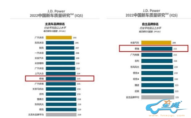 图为《2022中国新车质量研究报告》奇瑞排名(来自J.D. Power官网)