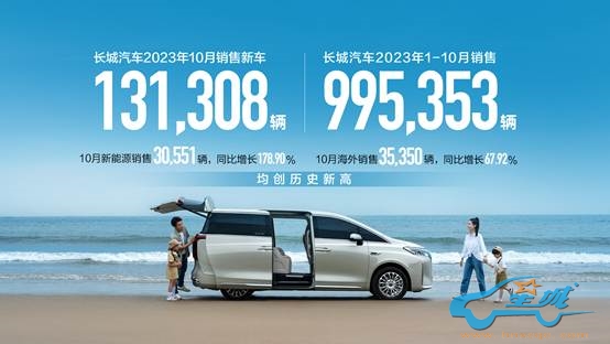11月6日,长城汽车股份有限公司(股票代码:601633.SH,02333.HK,82333.HK;以下简称“长城汽车”)发布2023年10月产销数据。今年10月,长城汽车销售新车131,308辆,同比增长31.04%;1-10月,连续十个月保持增长,累计销量达995,353辆,同比增长10.29%。