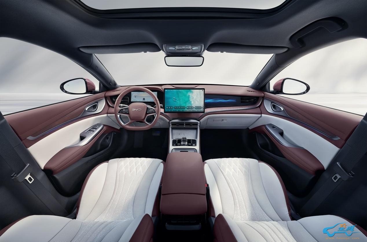 海豹DM-i采用了海洋网新一代内饰设计,营造出极具环绕式的流动视觉体验,带来更具高级感的沉浸式视觉享受。内饰材质采用同级少有的Nappa真皮、玫瑰真木装饰板、仿麂皮等多种高档材料,打造出极具品质感与档次感的新奢座舱氛围。