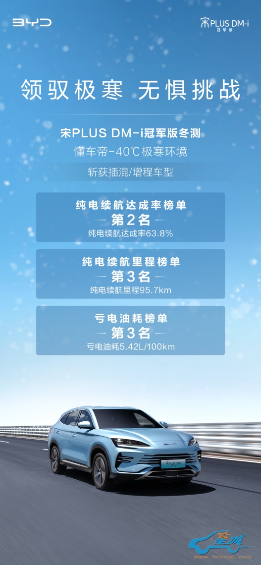 宋PLUS的品质和可靠性曾得到多家媒体权威评测的认证。在懂车帝2023年冬测中,-40℃极寒天气下,宋PLUS DM-i冠军版一举摘得纯电续航达成率榜单第2名、纯电续航里程榜单和亏电油耗榜单第3名等多项荣誉,续航、能耗表现双优,展现了硬核产品实力。在汽车之家2022年冬测中,8-10℃低温环境下,宋PLUS DM-i续航达成率也同样位居混动/增程组第一名。低温天气中,车辆的续航、油耗等方面是当前新能源用户和家庭用户最看重的,宋PLUS能够让用户免除用车焦虑,出行更安心。