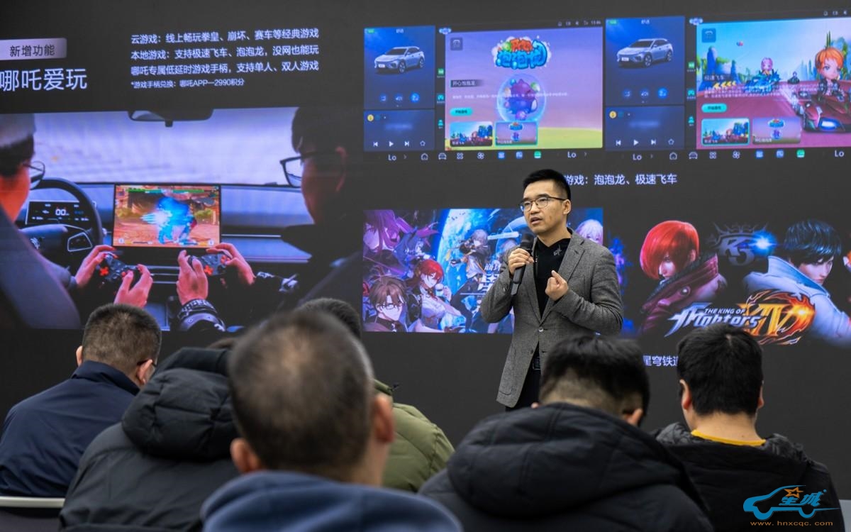 此次升级,哪吒X新增的“哪吒爱玩”车载游戏内容,内置拳皇、最终幻想、极速飞车等熟悉的经典游戏,并且支持双游戏手柄,实现“独乐乐不如众乐乐”,哪吒X还在车机中内置雷石KTV功能,以方便用户随时随地获得精神上的满足。