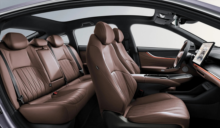 在外观方面,它采用全新的设计语言。车身侧面线条流畅,隐藏式门把手设计不仅提升了车辆的时尚感,还减小了风阻,提高了车辆的能效。车尾部分,贯穿式尾灯组与微微翘起的小鸭尾设计相得益彰,进一步增强了车辆的运动感,完美契合了当代年轻人的审美需求。