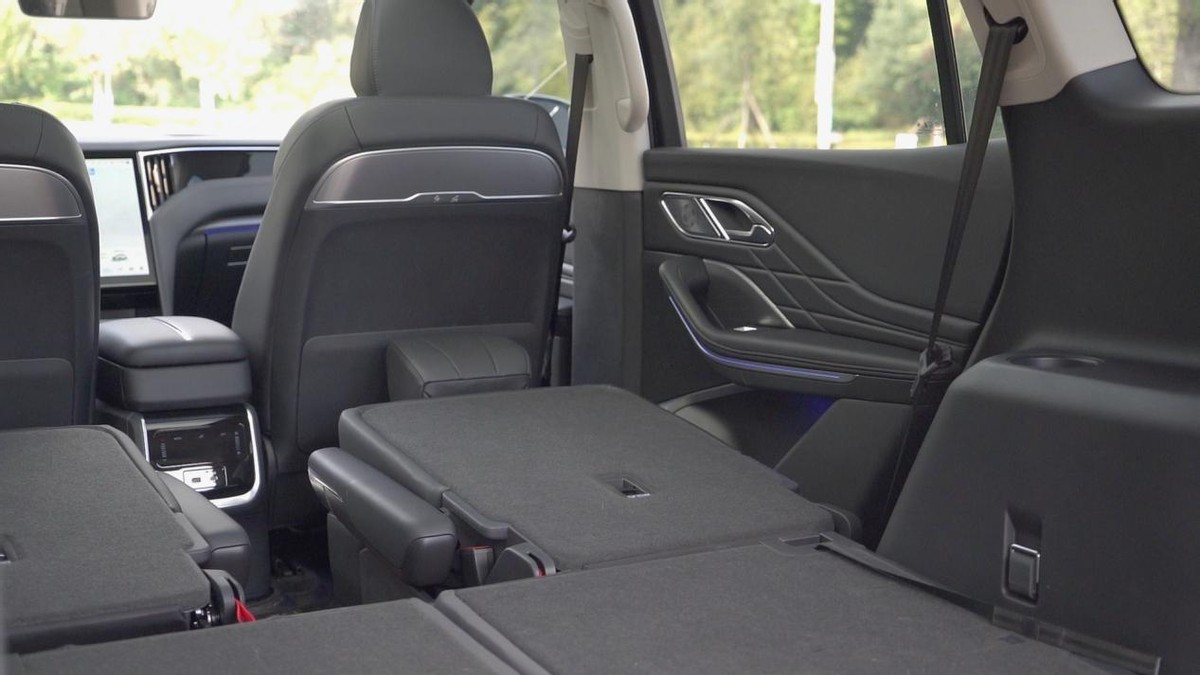 这样宽阔的空间布局,不论是家庭出行、商务接待,还是节假日的露营活动,都能完美契合我们的需求。提及露营,不得不提红旗HS7 PHEV的巧妙构思,只需将后排座椅纯平放倒,再巧妙地将后排头枕旋转成为舒适的小枕头,瞬间将车内空间转变为温馨的大床房,为旅途增添无限惬意与便利。