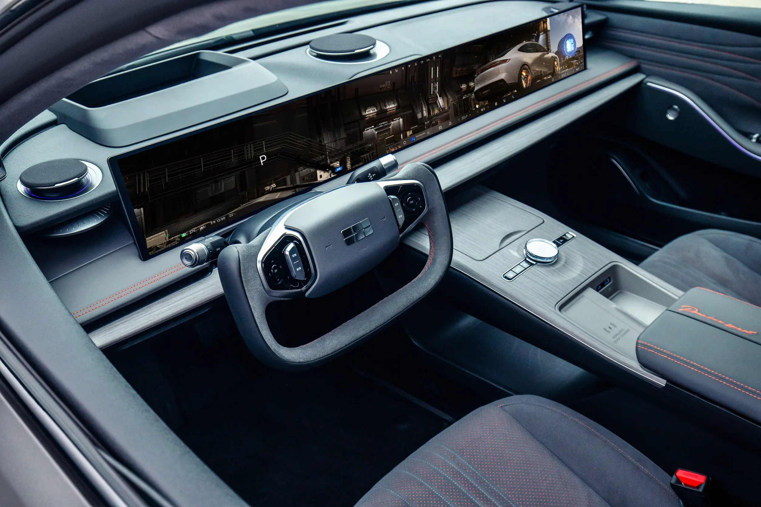 与众多新能源车型中常见的座舱中央16∶9大屏及其成熟的智舱生态相比,吉利银河E8的超长屏幕设计无疑为智舱工程师带来了前所未有的挑战。他们需要思考如何充分挖掘这块超长屏幕的性能潜力,如何优化UI布局以适应其特殊尺寸,如何实现更加定制化的交互体验,以及如何在保证功能丰富的同时,保持上手感和视觉感的整洁有序……这一系列难题亟待解决,展现了创新之路上的无限可能与探索精神。