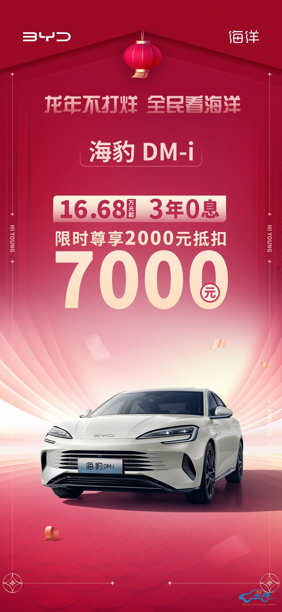 近期,春节购车热潮来袭,海豹DM-i多重购车礼遇限时进行中,5000元现金实惠看得见、3年免息购车无压力,心动不如行动,详情请咨询比亚迪海洋网各大4S店及商超店。