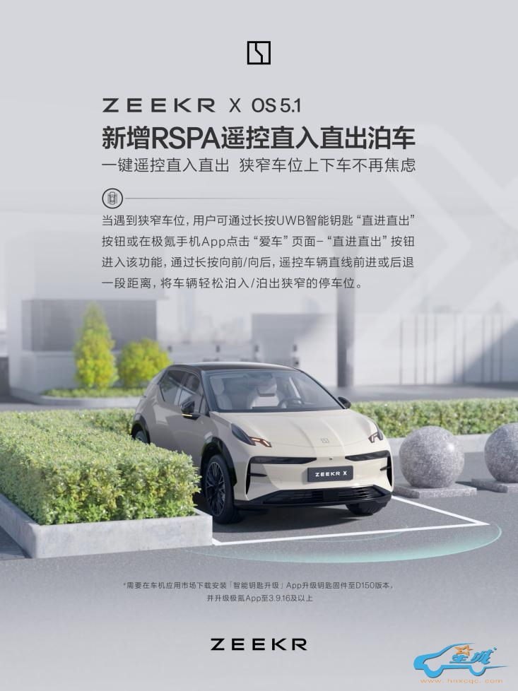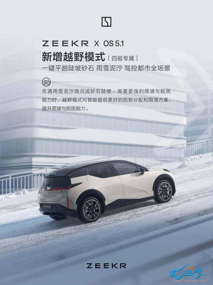 基于OS 5.1,极氪X新增越野模式及RSPA遥控直入直出泊车等功能,进一步提升了用户的都市行车体验。