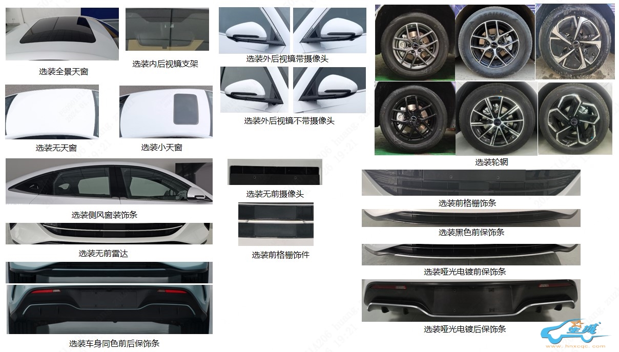 根据“选装照片”显示,根据款型不同,海豹06将提供R16、R17、R18三种尺寸不同样式的轮毂,造型方面有明显的运动感和低风阻取向。同时,包括天窗、车身装饰件、摄像头、雷达等诸多配置,在不同款型的车型上也有细微差别。