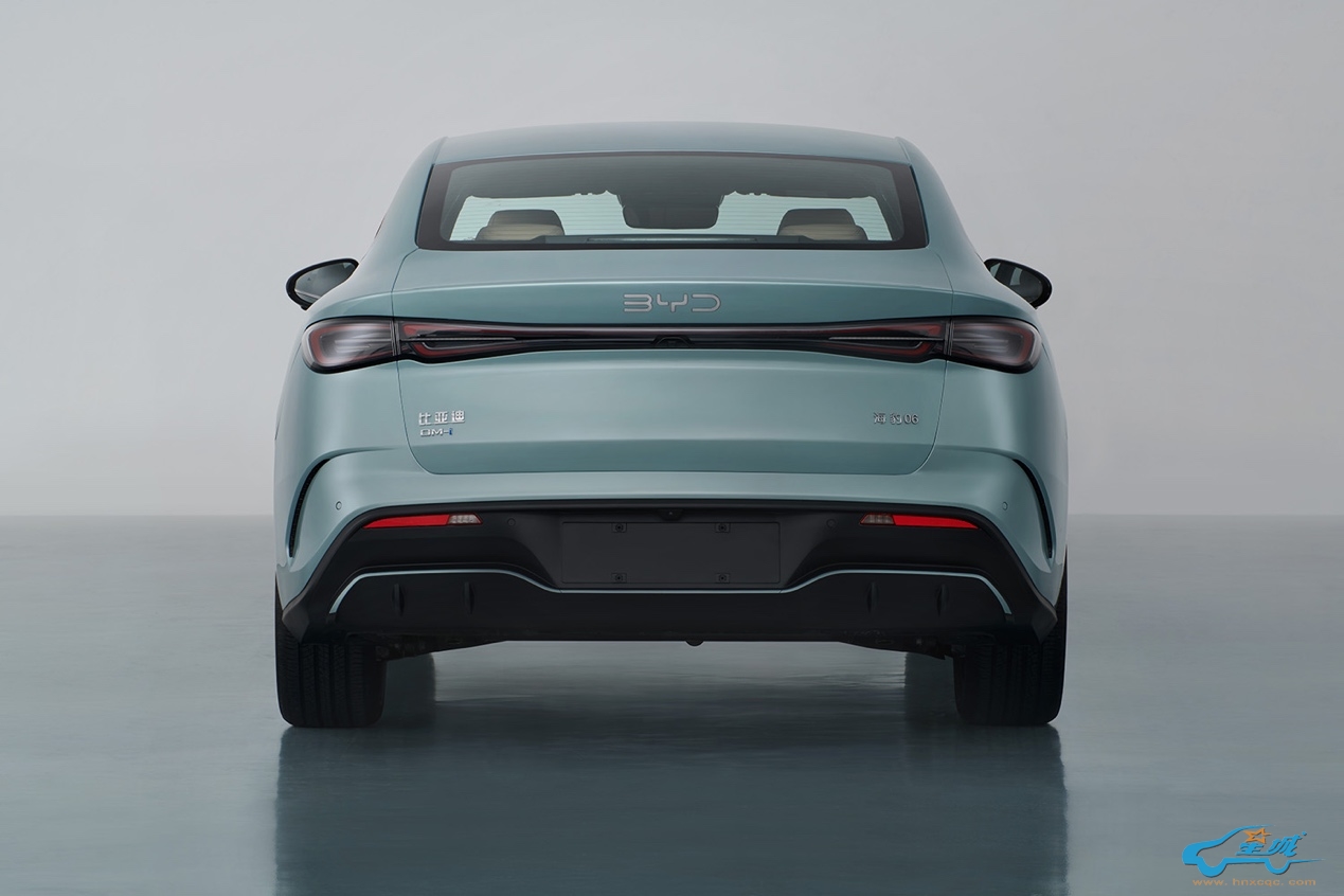 海豹06车尾整体观感简洁、层次分明,尾灯采用了贯穿式设计,并对轮廓进行了熏黑处理,品质感与运动感较强。灯腔内部采用了双C造型,精致感出色。后保采用了纯黑色的梯形设计,与车身同色的饰条贯穿左右,和后扩散器共同实现了上窄下宽的视觉效果,稳定感十足。