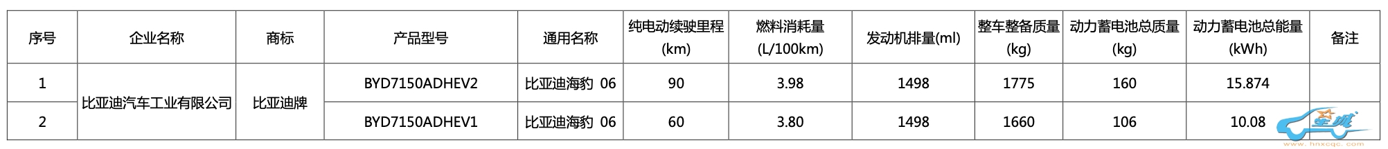 依据公告内容来看,根据电池容量和电机功率不同,海豹06将提供两种动力版本。其中,搭载10.08kWh电池版本车型,工信部(WLTC)纯电续航里程为60km;搭载15.874kWh电池版本的车型,工信部(WLTC)纯电续航里程可达90km。