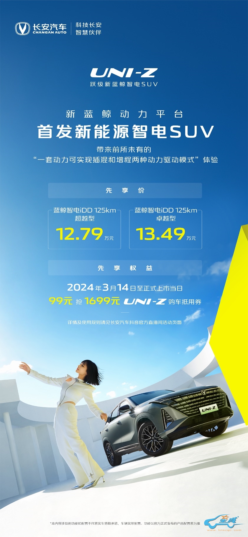 此次长安UNI-Z千里奔袭麻辣挑战,不仅是一次关于美食的文化之旅,也让更多人见证了UNI序列的产品实力。在新蓝鲸动力赋能下,长安UNI-Z在续航、油耗、舒适性方面均给出了高分答卷,实测表现在同级混动SUV中处于领先地位。目前,长安UNI-Z先享计划已正式开启,先享价格12.79-13.49万元。同时,自2024年3月14日至正式上市当日,用户可99元抢1699元UNI-Z购车抵用券。从先享计划来看,长安UNI-Z在同级中拥有相当突出的质价比,相信未来上市后,长安UNI-Z还将在价格及购车政策上给到用户更多惊喜,大家拭目以待!