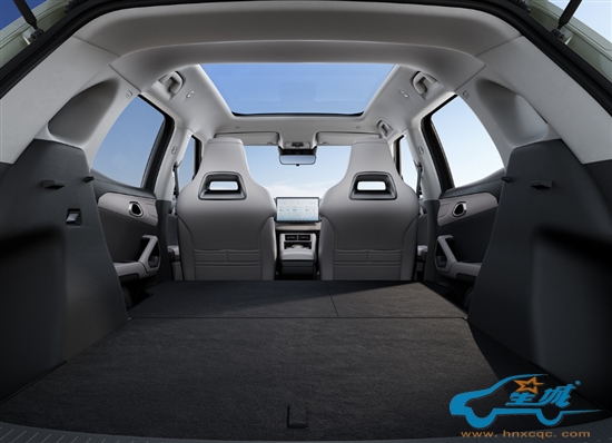 侧面来看,隐藏式门把手与悬浮式车顶设计相得益彰,侧裙部分还添加了黑色护板和银色装饰,不仅提升了时尚感,更增添了几分运动气息。而尾部造型则显得圆润而饱满,贯穿式尾灯两侧灯组以数字“8”为灵感,点亮后极具辨识度。