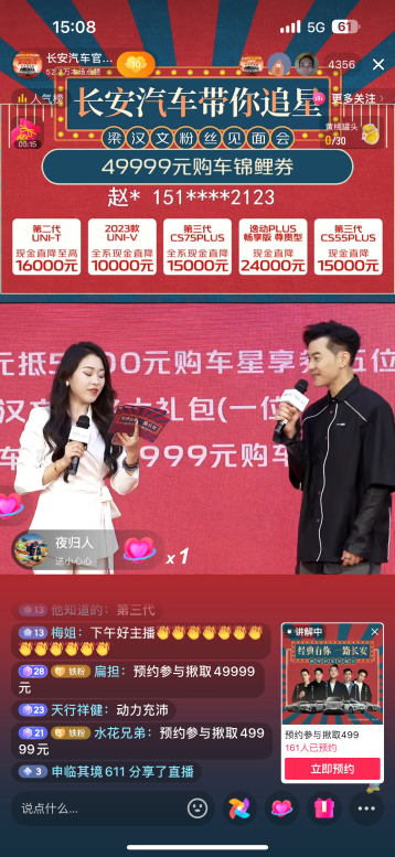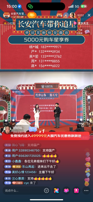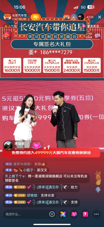 梁汉文空降直播间与粉丝网友温情互动,带来超高人气,释放长安汽车惊爆福利,政策力度空前来袭。