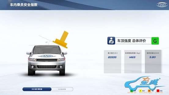 在车顶强度测试中,全新第三代逍客再次赢得“G”全优评价,展示“钢筋铁骨”的超强素质。面对试验质量、峰值载荷F、载荷质量比等车顶强度评价项目,全新第三代逍客在承受相当于整车重量5.8倍的压力时,仅发生微小的变形量,充分保障车体结构的完整度。