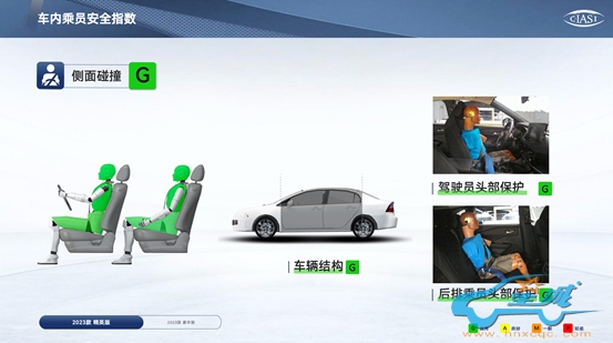 侧面碰撞测试也是车内乘员安全指数考核项目之一,模拟十字路口碰撞事故,测量驾驶员侧受到碰撞时乘员头部、胸部和骨盆部位受到的伤害。