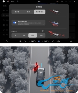 其中,特别针对ADS侧向主动安全进行升级:新增侧向主动安全功能LOCP,当车辆存在与侧向成排水马、栅栏等障碍物碰撞的风险时,系统将自动触发紧急干预自动转向避让,及时出手规避或减轻碰撞风险,此外,侧向防碰撞功能配置项还增加障碍物和实线选项。