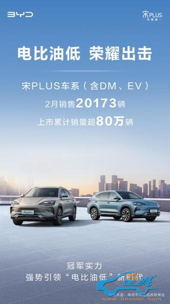 日前,比亚迪海洋网销冠车型宋PLUS荣耀版惊喜上市,开启“电比油低”新时代,起售价低至12.98万元,为新能源市场带来更高价值产品,加速中国新能源品牌国民化!作为A级SUV冠军车系,宋PLUS车系持续收获热销表现,根据最新销量数据显示,2月份宋PLUS车系热销20173辆,稳居2万月销之上。新春伊始,宋PLUS延续稳健销量表现,收获热销开门红。