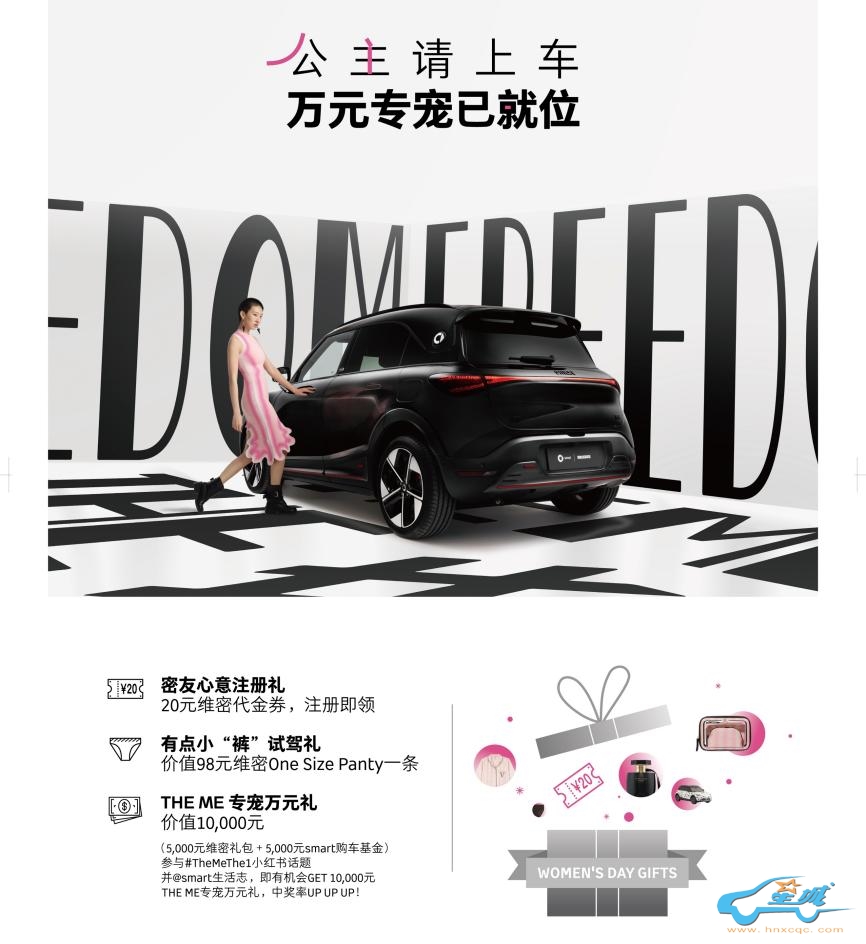“源自热爱,未被定义”,每位女性都因热爱而不同,都是自己的“THE ME, THE #1”。3月1日-3月10日期间,密友可通过smart汽车APP、H5、小红书等平台参与smart发起的#TheMeThe1#话题互动,秀出你的THE ME态度,更有机会获取THE ME专宠万元礼。