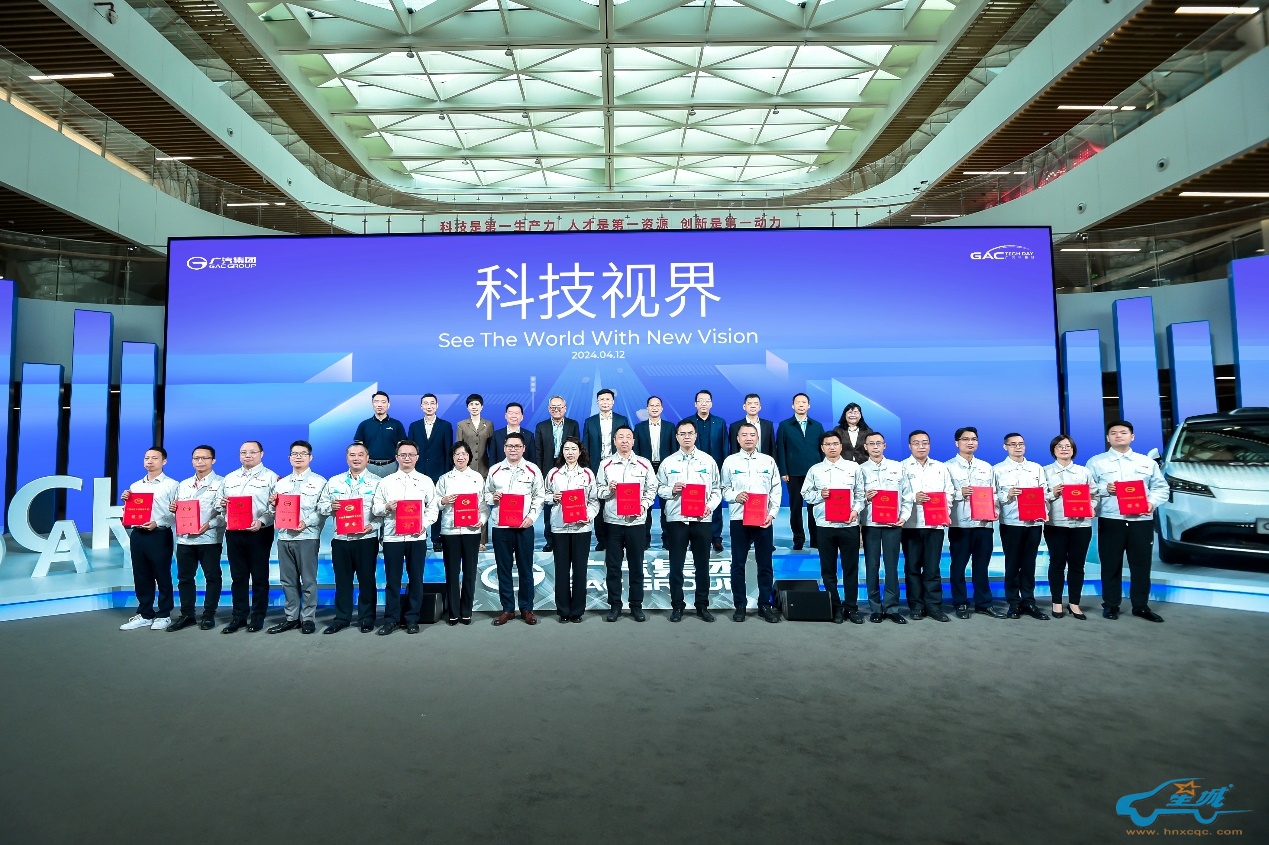 广汽集团以科技创新积累了显著的技术成果。图为在2024广汽科技日上举行的2023年度“广汽集团科学技术奖”获奖项目表彰。
