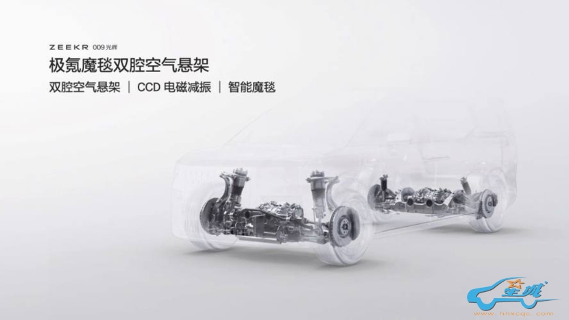 此外,极氪009光辉采纳了先进的「极氪式操控」技术,其中包括最新的极氪魔毯双腔空气悬架系统。这套系统以CCD电磁减振和双腔空气悬架为核心构建了一个主动式悬架,进一步融入了「智能魔毯」功能,实现了车辆底盘域和智驾域的完全联动。借助车载的主动感知系统与高级的感知及决策算法,它能够智能辨别路面障碍物,并能在毫秒级别上调整悬挂的硬度,这使得极氪009光辉成为全球响应速度最快的四座MPV车型之一,其极致舒适的驾乘体验可媲美百万级别的超豪华轿车。