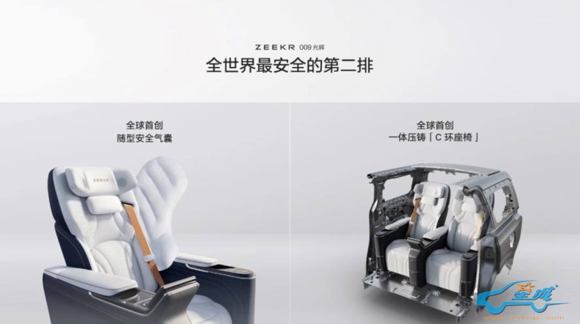 极氪009光辉车型引领全球,推出了创新的一体式压铸「C环座椅」设计。该车采用了一种先进的一体式压铸技术,用于其后端铝制车身结构。这一工艺使得后排的两个座椅与车身的最高刚性点——位于C位置的结构——实现了牢固连接。通过将座椅锚定在整体大型压铸件上,并使它们和整个白车身融为一体,打造出一个连续完整的C形环状结构。这个结构为乘客提供了360度无死角的坚固防护,确保二排乘客始终处于最安全的位置,享受“C位”级别的安全保障。