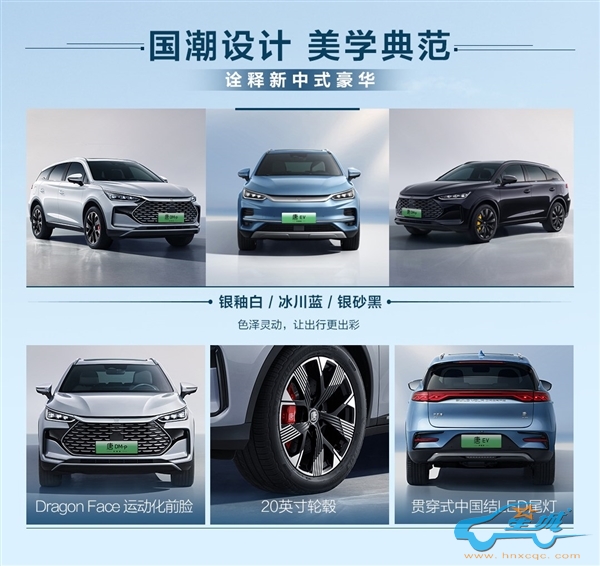 在设计上,新车型忠实于Dragon Face设计语言的传统。其中,电动车型EV荣耀版特别采用了一种封闭式的前格栅造型,而混动车型DM-p荣耀版则呈现出独特的龙鳞样式前进气格栅。车辆前部还装饰有银色的贯穿式饰带,其灵感源自龙须。车尾部,比亚迪的新款车型增添了标志性的横贯中国结图案LED尾灯组,为车辆增添了独特风采。