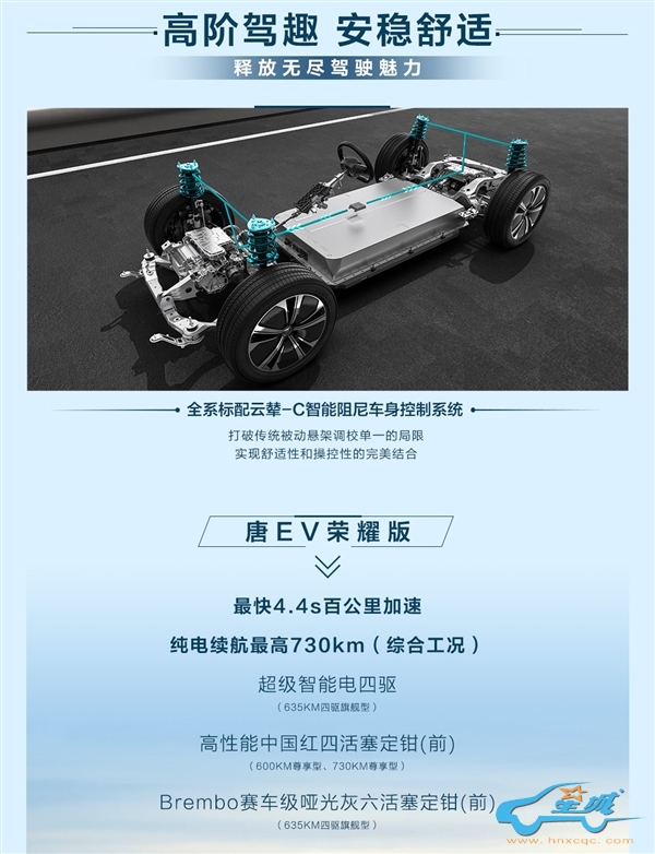 同时,该车系全部配备了云辇-C和智能座舱高阶版-DiLink 100。云辇-C是一种智能阻尼车身控制系统,能够以毫秒级的速度调整悬架的硬度。当车辆急加速、急减速或高速过弯时,系统将提高悬架的硬化程度,有效控制车身的前后俯仰和侧倾,从而提高了汽车的操控性能。