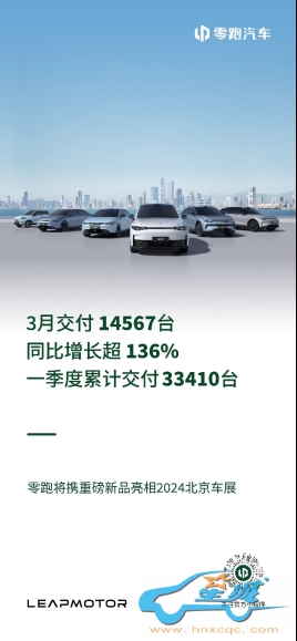 4月1日,零跑汽车公布了最新交付数据:2024年3月,零跑汽车交付达14567台,实现同比增长超136%;一季度累计交付达33410台。伴随着零跑C10新车效应愈发显现——3月,零跑汽车连续多周“咬住”新势力销量第三名,站稳新势力头部位置,展现出强劲的发展势头。