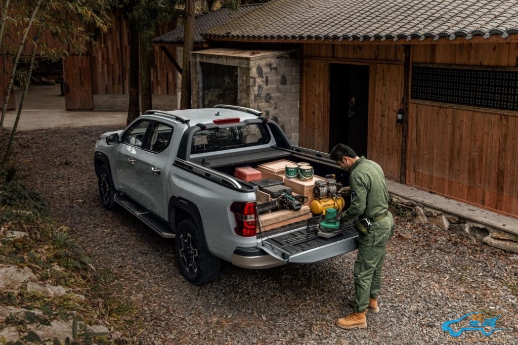 在皮卡车领域,户外作业是标准操作,因此可靠的电力供应至关重要,它直接影响到作业能否高效顺畅地进行。目前市面上的柴油动力皮卡通常需要配合携带便携式电源或发电机,这不仅增加了负重,占用了车辆空间,而且会产生较大的噪音。另一方面,现有的电动皮卡车型经常面临一系列问题,如充电时间过长、提供的能量不足以支撑持续的户外作业,以及无法实现同时充电和使用电池供电,这些挑战无疑加剧了用户在日常使用中的困扰。