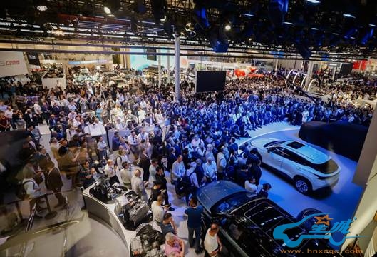 图为北京国际车展上,3000多名海外友人集聚奇瑞展区观看发布活动