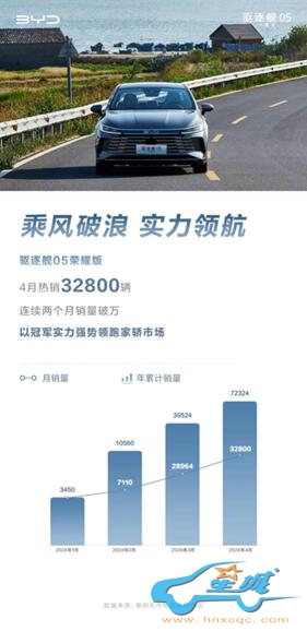近日,比亚迪公布了4月销量数据,乘用车销售312048辆,同比增长49%。作为打响“电比油低”战略第一枪的明星车型驱逐舰05荣耀版延续热销态势,在刚刚过去的4月共售出32800辆,创上市月销新高,连续两个月销量过2万,以冠军实力持续领跑家轿市场。