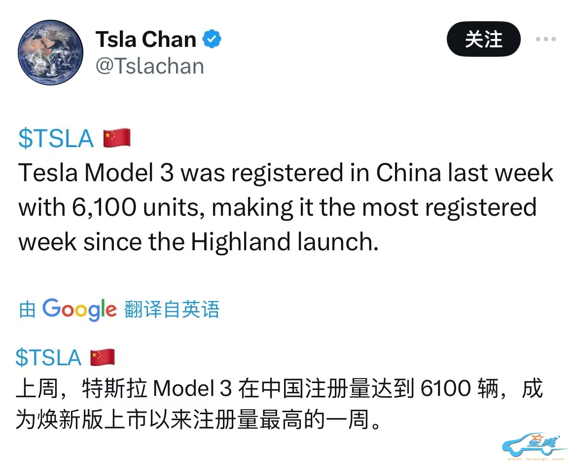 Model 3单周国内注册量突破6000辆,创下新款车型上市以来的销量最高值。