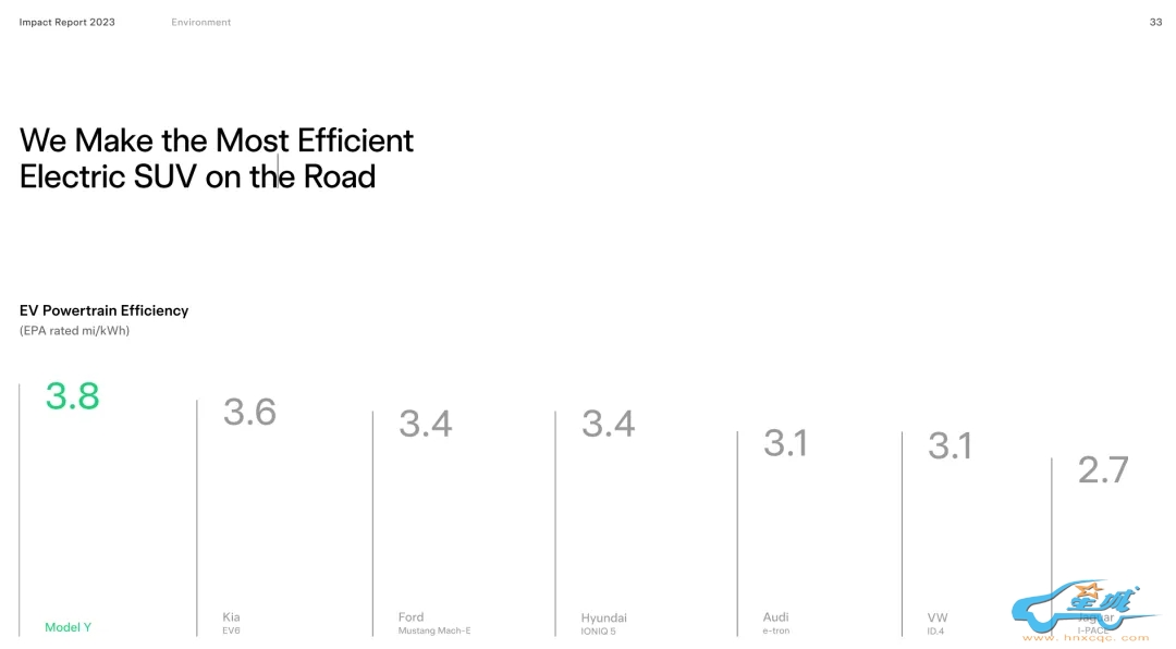 特斯拉的设计始终围绕着一个核心——效率。最新报告显示,Model Y是全球能耗最低的SUV,其每度电能行驶6.1公里,这一数据在“电动车动力总成效率”指标上领先行业。为了实现这一高能效表现,特斯拉在三电系统、热管理、车身设计等多方面进行了深度创新,如独特的扁线电机设计、行业首创的热泵系统,以及独特的全景玻璃车顶设计等。