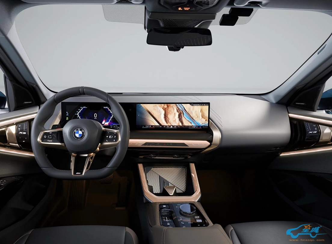此次座舱的设计亮点,无疑是全新设计的环抱式交互光带,这一设计从中央控制台开始,向两侧延伸,直至门板上的V字形环抱光带,宛如张开的双臂,将驾驶者和乘客温柔地拥入怀抱。此外,环抱式交互光带的创新之处还在于其首次向下扩展,巧妙地将一部分前排储物空间纳入其中,从而增强了中控台的整体感。在科技配置方面,新车引入了一组双联屏,分别是12.3英寸和14.9英寸的组合,内置宝马最新的iDrive 9系统,配备了QuickSelect功能,并支持CarPlay及Android Auto的互联功能。与现行车型相比,这些改变可谓颠覆性的进步。