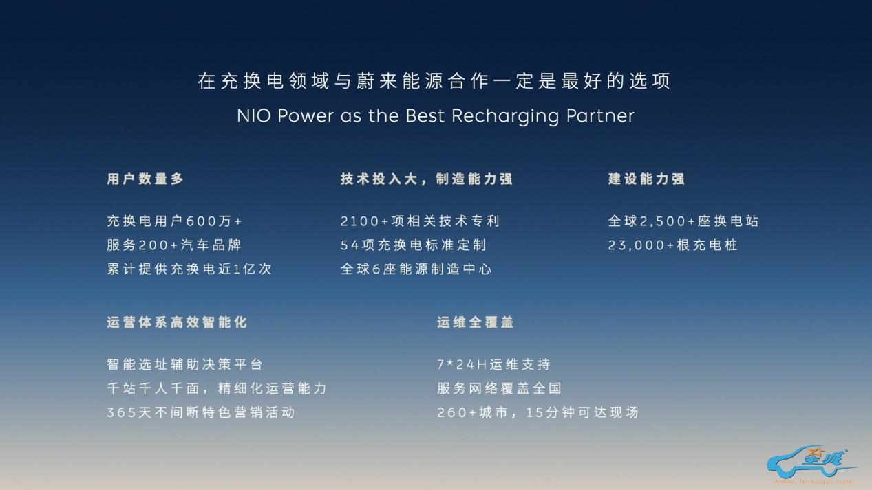 凭借用户基础广、技术专利多、建站经验丰富、运维团队覆盖全国等优势,蔚来已与多方合作共建充换电站,并正式开启加电合伙人计划,向全社会开放合作建设充换电站。