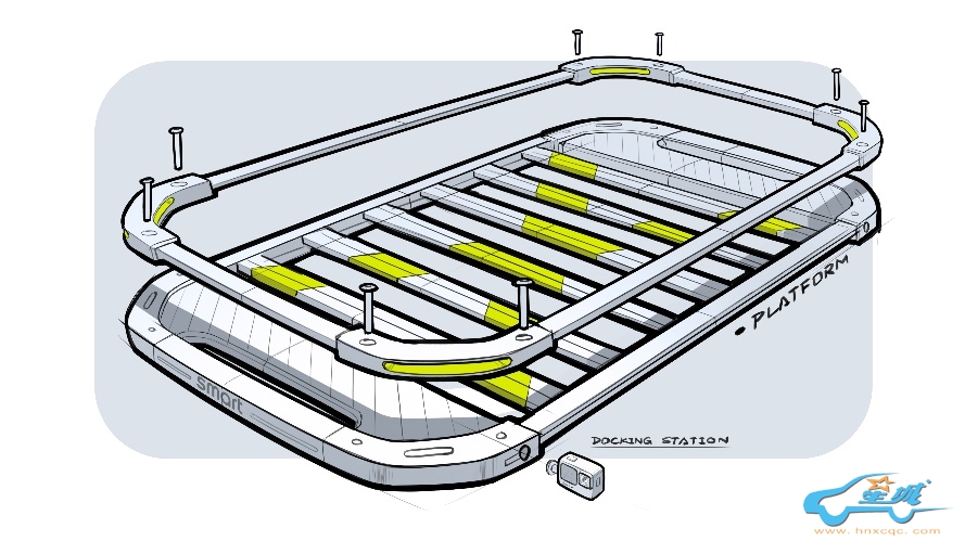 受全新smart精灵#5概念车设计的启发,X型涂装车顶平台采用刚中带柔的设计风格,不仅满足实用性,更被赋予了极具未来感的外观造型,更融入了象征神秘和未知的“X”形,个性十足。其采用模块化设计,具有灵活性和未来升级空间,双层可拆卸结构则预留空间,容纳更多户外装备并满足多种使用场景。值得一提的是,车顶平台侧面还预留了四个便捷的标准安装口,为运动相机或其它扩展配件提供了更多可能。