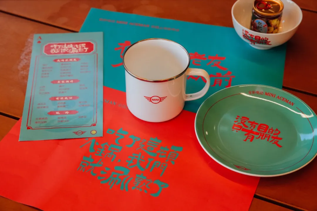 发布会当天,MIN将火锅山装修风格定制成“MINI风”,随处可见的红、蓝巨型气模;大屏上的标语“吃了这顿火锅,我们就涮熟了”“开了那么远的路,只是想和你吃顿火锅”;还有餐具也是和发布会主题相关。