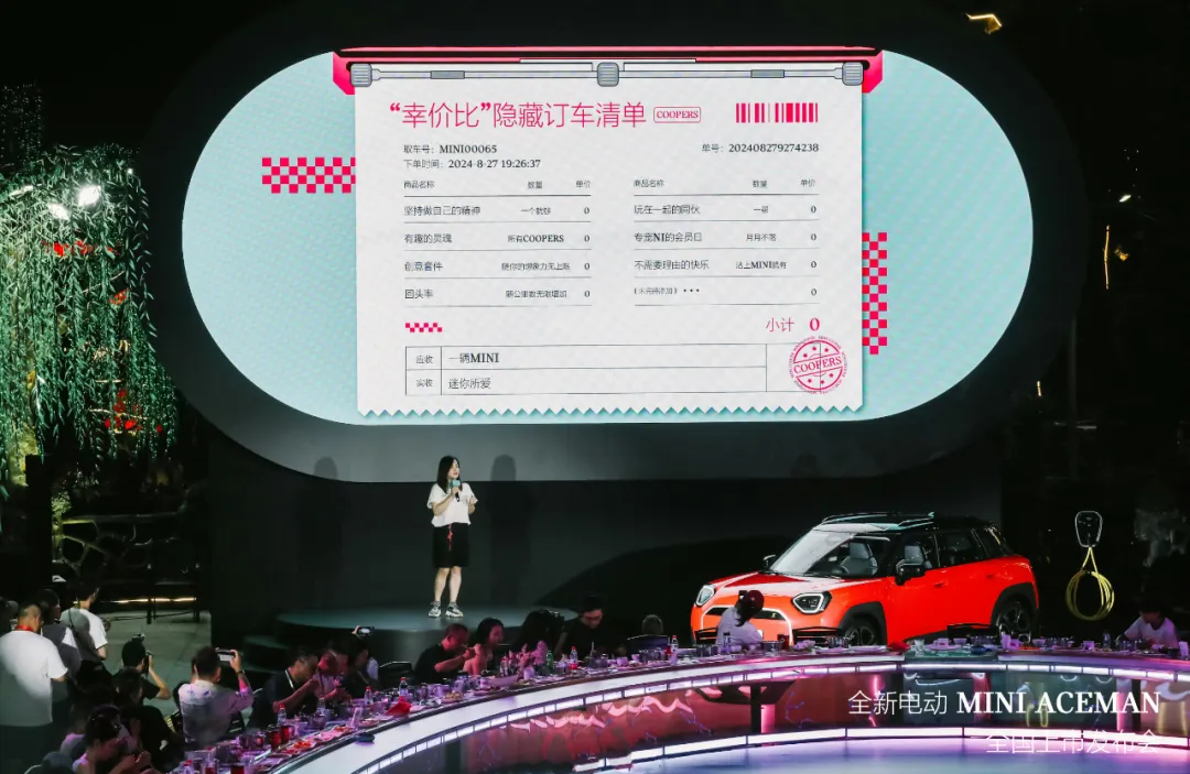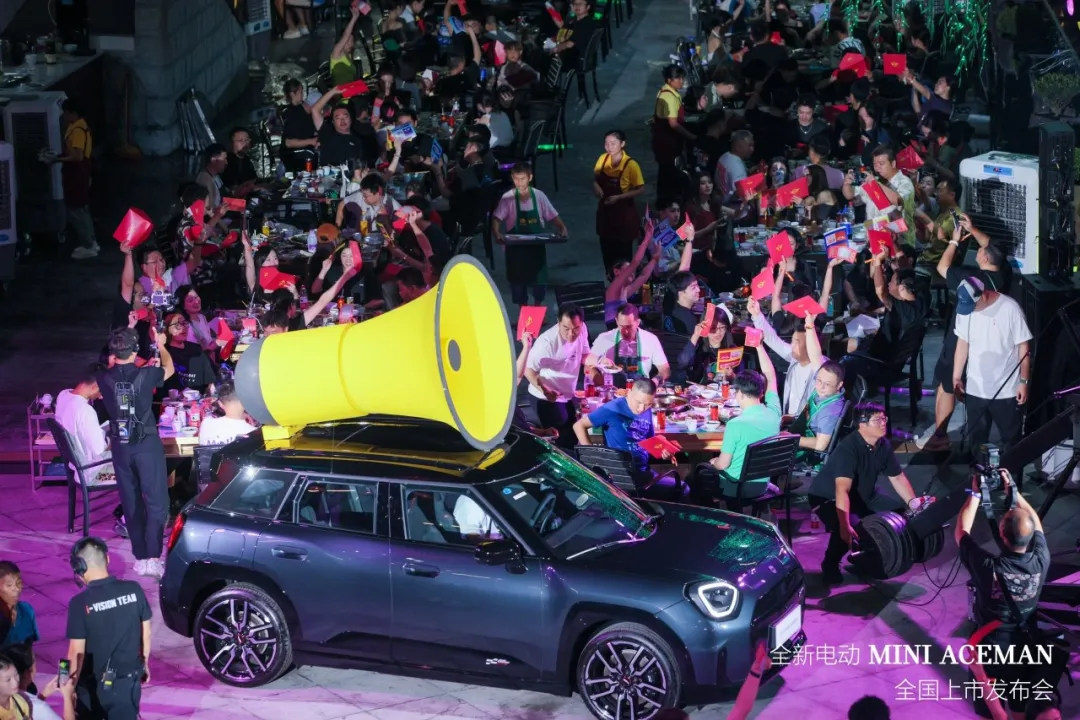 8月27日晚,以“没有目的,只有朋友”为主题的全新电动MINI ACEMAN全国上市发布会在世界上最大的火锅餐厅(座位容量)——重庆“枇杷园”举办。有车主表示“在重庆吃着火锅,MINI就把纯电版MINI ACEMAN发布了”。