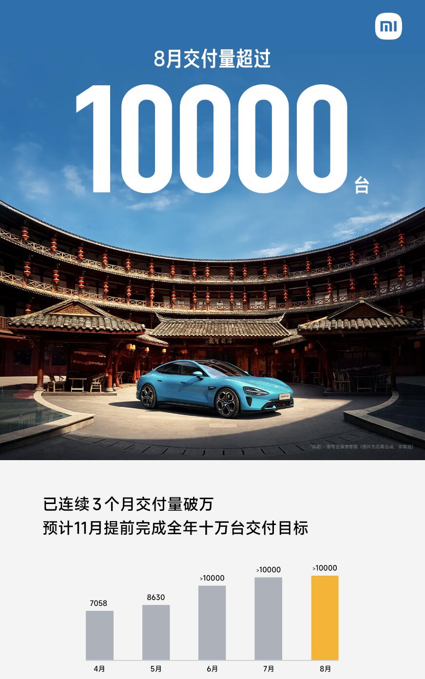 9月1日,小米汽车,一直处于行业关注的中心,计划公布其在8月份的交付数据。据悉,小米SU7型号的交付量已突破10,000台,标志着其连续三个月实现了超万辆的交付目标。这一趋势预示着小米有望在11月提前达成全年10万台的交付目标。在国内汽车行业激烈的竞争中,小米汽车是否能够持续保持这种热度,仍然值得观察。