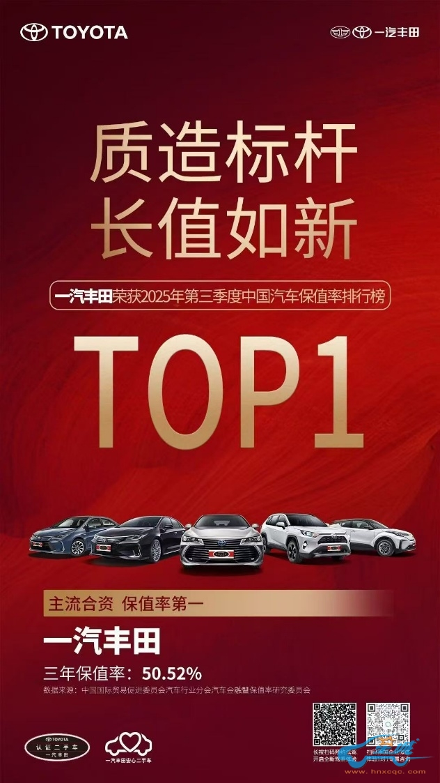 长期主义展示在一汽丰田在产品可靠性等关键领域下足了功夫,就如马拉松大赛对保障用车的首先要求就是要绝对安全可靠。成立22年来,一汽丰田始终坚守“品质保障”的金字招牌,将对品质的严苛管理注入每一个生产环节,不仅保证不良产品“不流向用户”,更严苛到不流入“下一个工序”。也因此,一汽丰田的每一款车都自带>高品质、高耐久性、高可靠性的QDR属性>,成为用户跨越时间周期的品质之选,并保持着极高的保值率,在贸促会汽车分会发布的2025第三季度汽车保值率排行榜中,一汽丰田以三年保值率50.52%的成绩,荣膺主流合资品牌第一名。