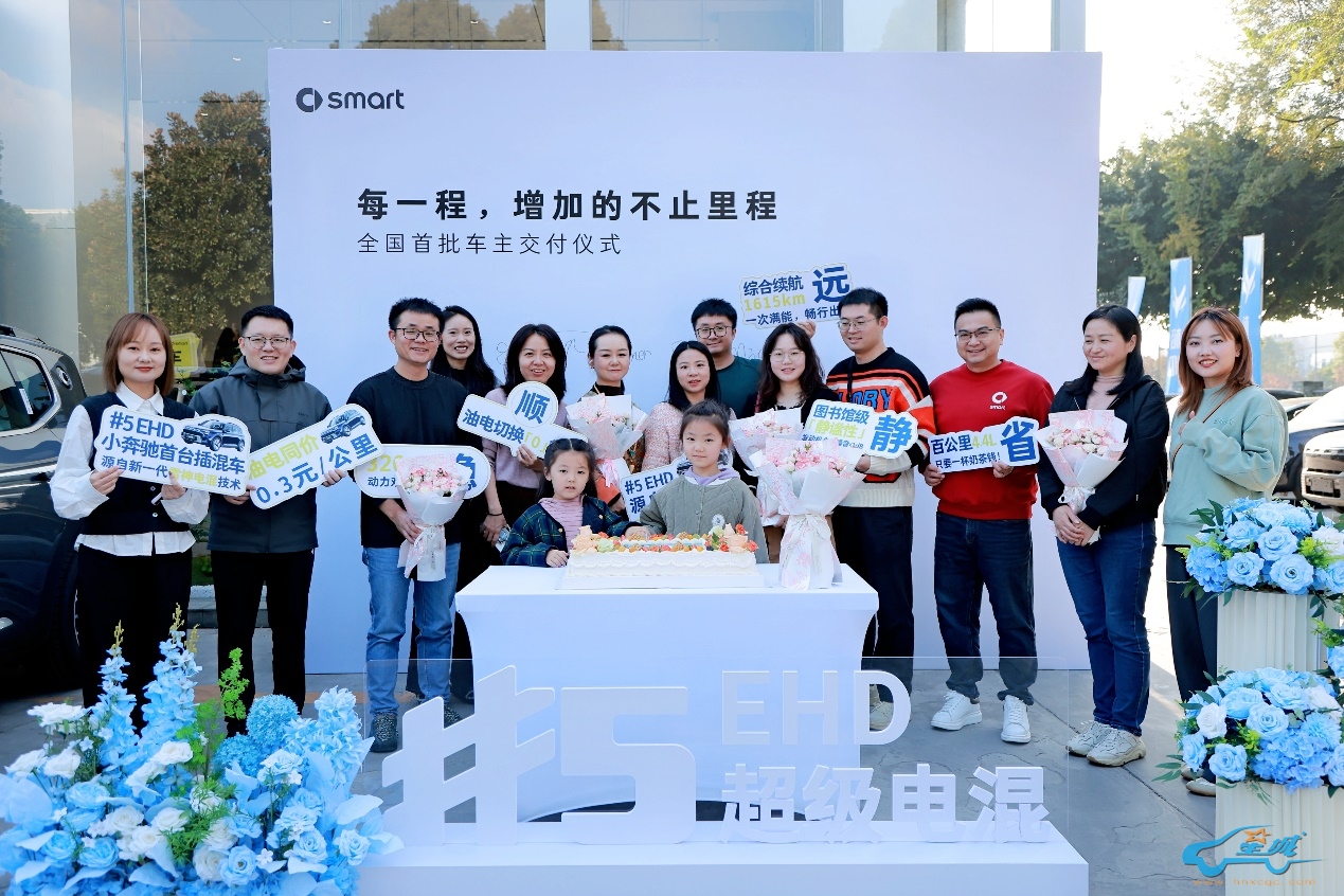 (2025年11月17日,中国杭州)近日,smart首款混动车型 #5 EHD超级电混,正式开启交付。全国多家smart店端,集体向首批车主交付新车,与用户共同见证smart迈入全新时代。