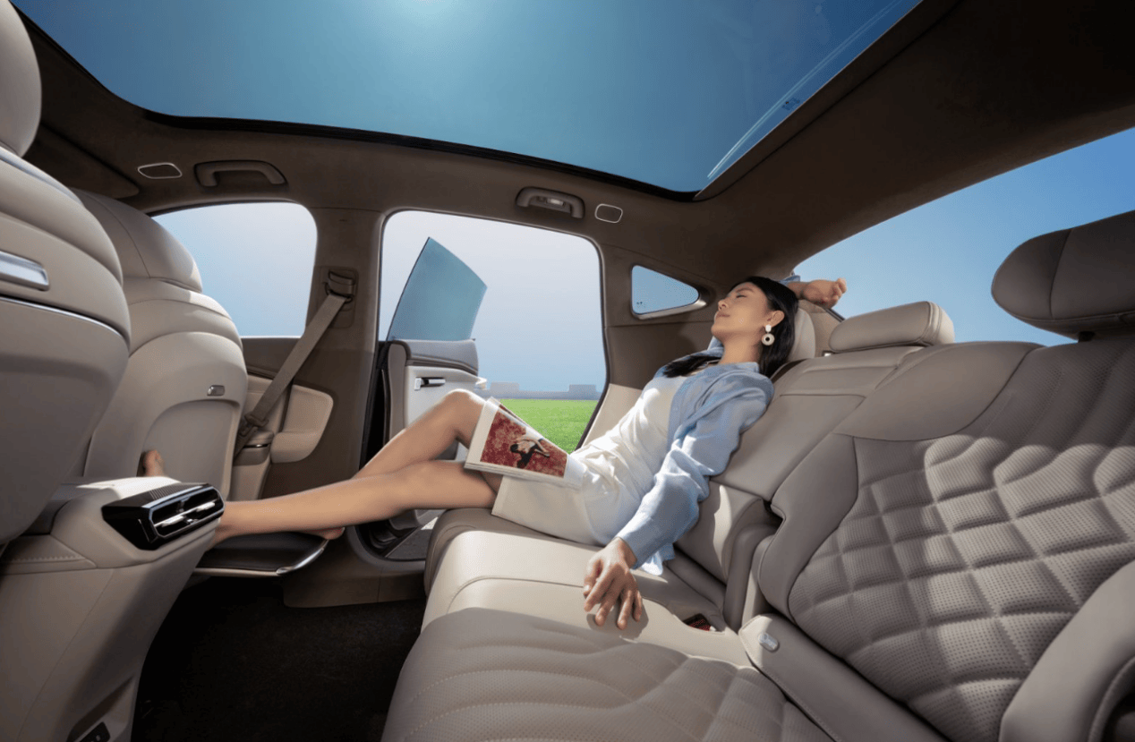 得益于2935mm的超长轴距,昊铂HT 670 Pro在乘坐与储物空间上展现出了越级的优势。其常规后备箱容积高达670L,足以轻松容纳婴儿车、折叠帐篷等大型物品。更值得一提的是,该车还配备了80L的下沉空间和55L的前备箱,共同构成了“三层储物”格局,让全家出游时的露营装备都能得到妥善安置。此外,后排座椅支持143°躺平,并搭配脚蹬与小桌板,营造出“移动头等舱”般的舒适体验。午休时刻,只需一键操作,座舱便能迅速变身为专属单人大床房,让用户在车内也能享受一场惬意的午睡。