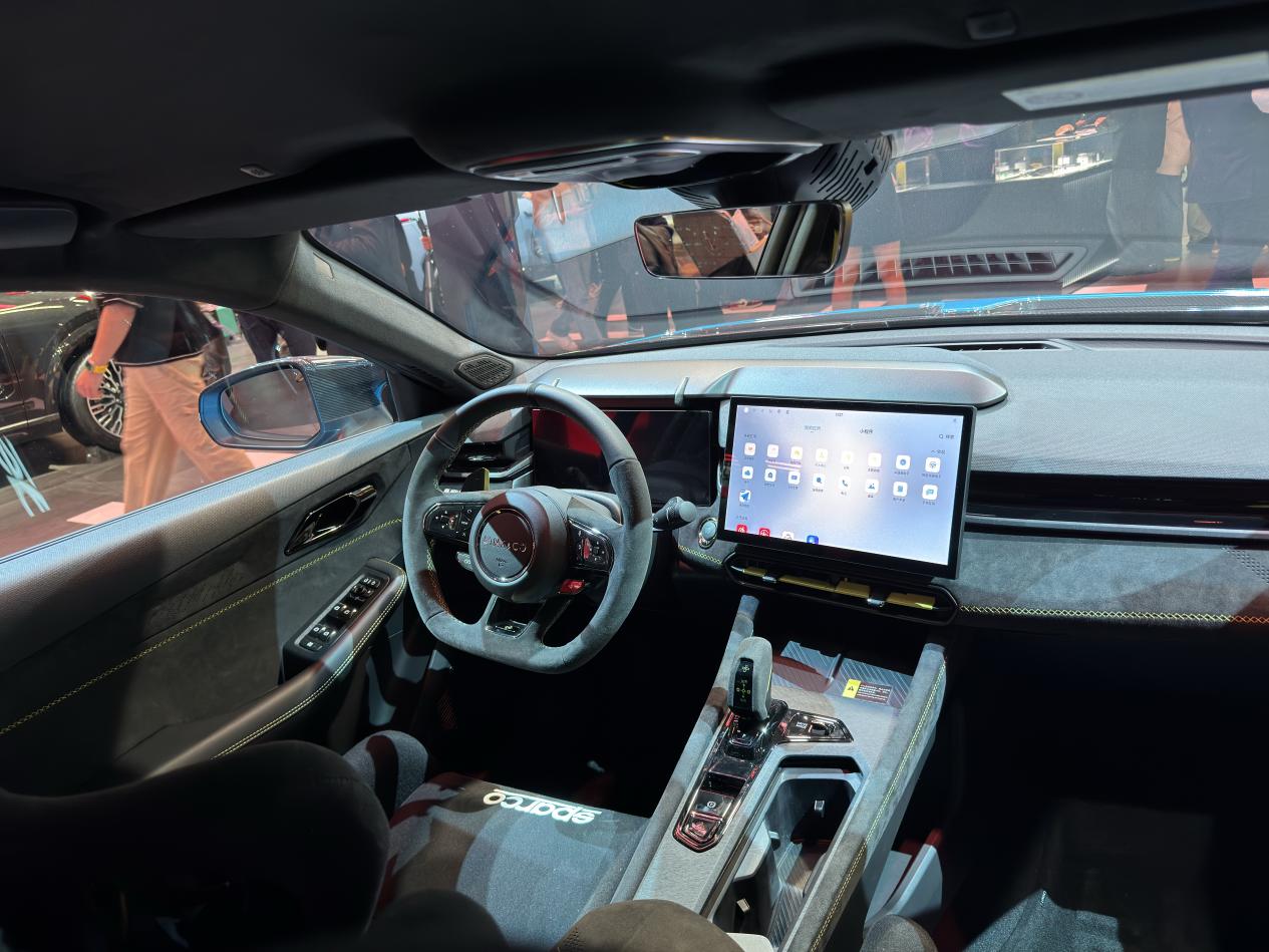 值得一提的是,作为一款街车,或者说一款赛车造型的运动轿跑车型,领克03+ TCR版提供了12.8英寸的中控大屏,内置了智能车机系统和骁龙8155芯片,并拥有360全景影像,而这些额外的装备对于赛车来说,都是需要做减重处理的。
