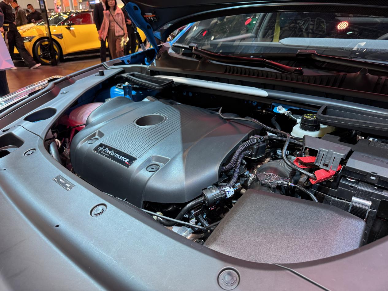 说完了能看到的部分,接着我们聊聊看不到的地方。领克03+ TCR版搭载了一台2.0T发动机,能够输出最大马力350匹,最大扭矩450牛·米,这个数据跟那台140万的赛车是一样的。