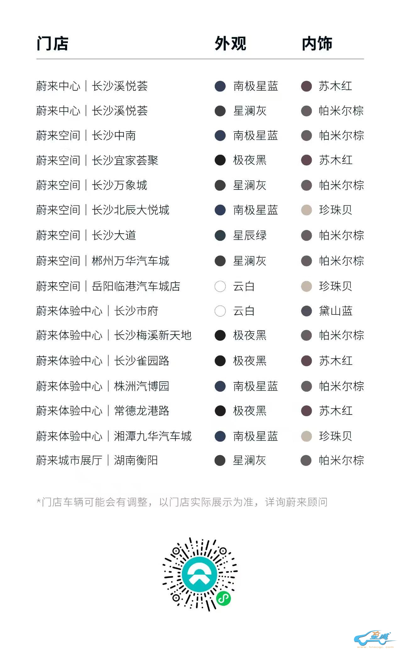 湖南省各大蔚来门店现已开放全新ES8试驾,扫描下图二维码并提交相关信息即可完成预约,欢迎亲临线下门店,开启豪华纯电出行新体验。