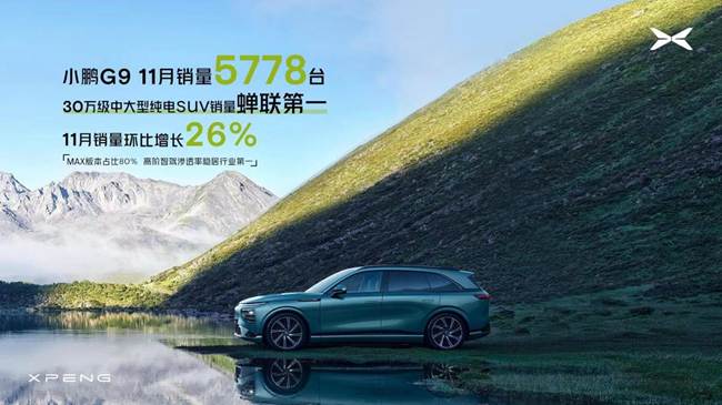 冠绝海内外 小鹏G9蝉联30万级中大型纯电SUV销量第一