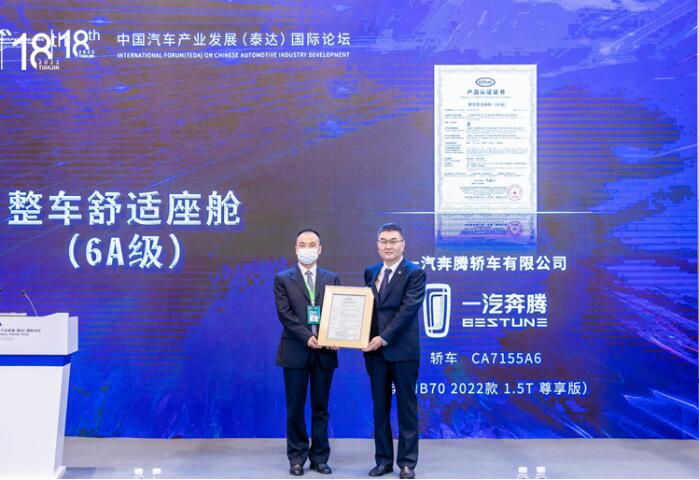 中国轿车舒适标杆 一汽奔腾B70荣膺整车舒适座舱认证