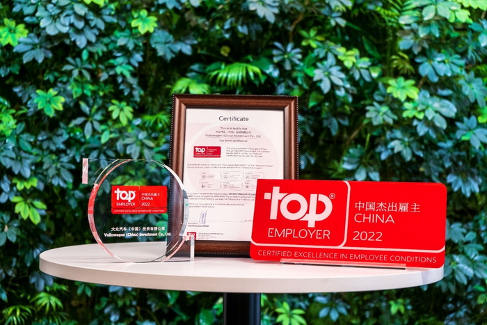 大众汽车集团(中国)连续八年荣膺“中国杰出雇主”称号
